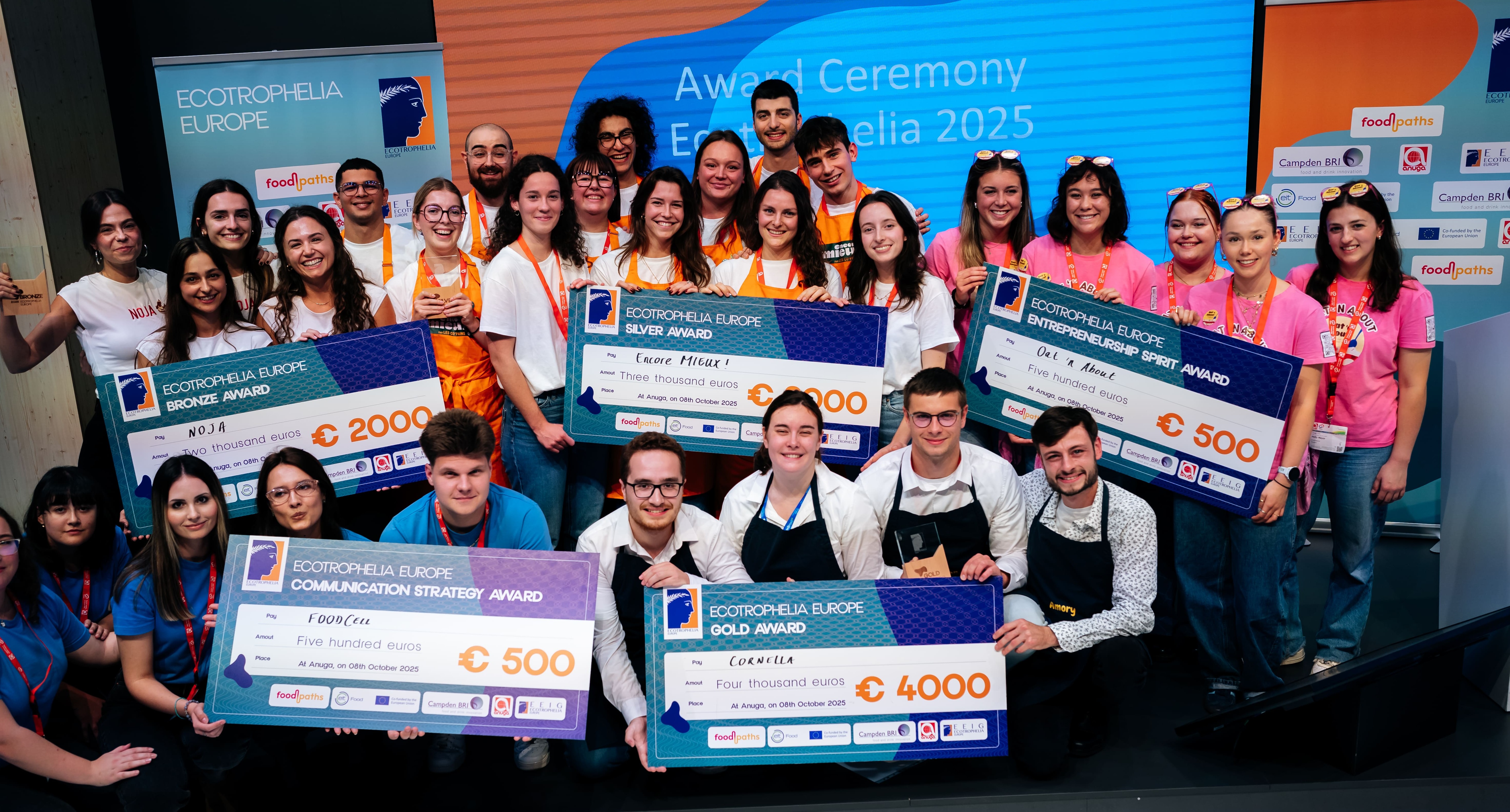 On the 7th and 8th of October 2025, at ANUGA Cologne, the ECOTROPHELIA EUROPE competition took place gathering 20 judge members, 18 teams, from 18 countries, with their professors. For the 25 years of ECOTROPHELIA, the competition continues to showcase the innovation of the future leaders of the food sector. Discover the winners of the 2025 edition of ECOTROPHELIA below!